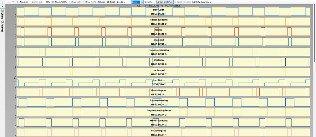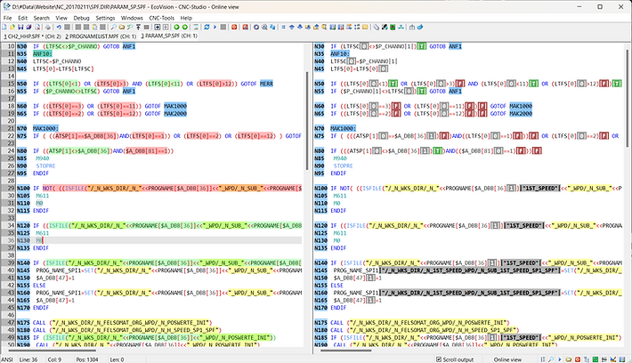 Use the Live-Online-Mode to watch and analyze your CNC programs. See what conditions are true and even changes values.